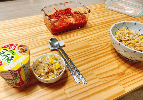 컵누들이랑 간장계란볶음밥이랑 김치랑 먹었다.