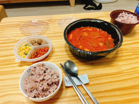 김치찌개 엄청 맛있었는데 밥은 다 먹지못했다.